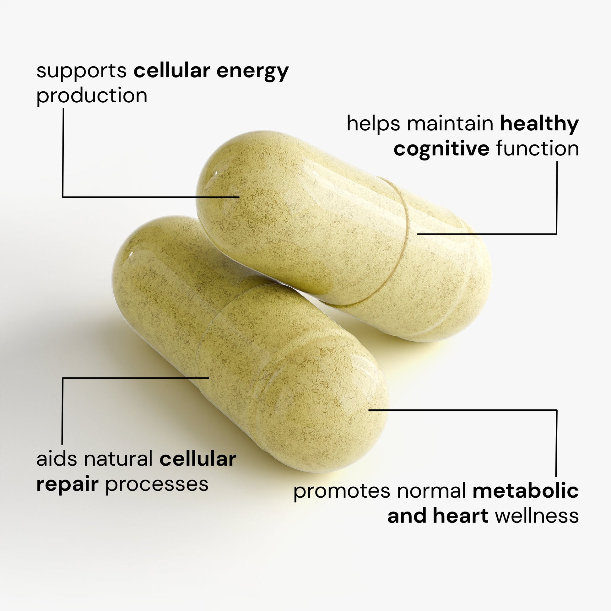 This supplement supports brain health by aiding in normal cellular energy production and neurological wellness.